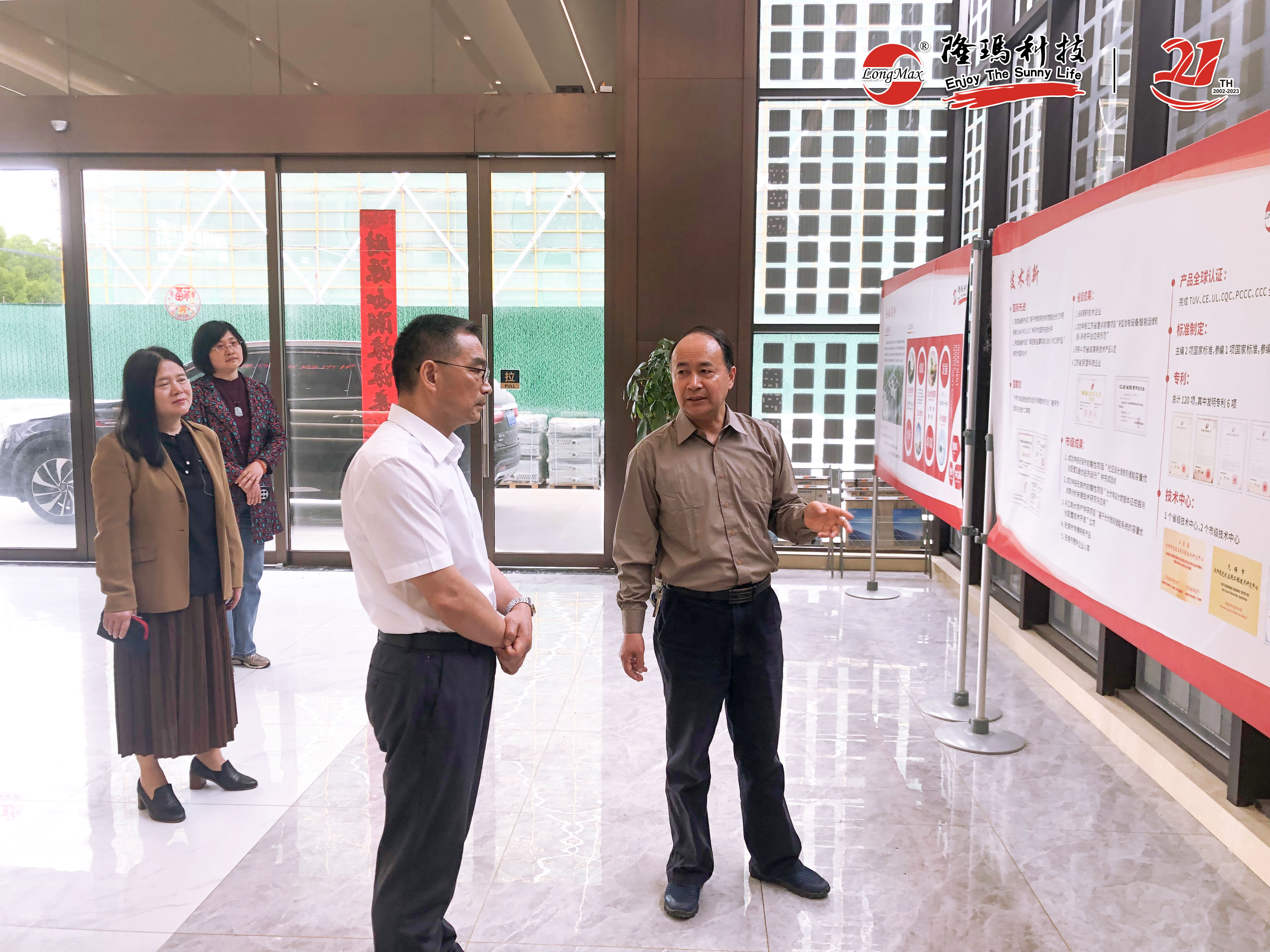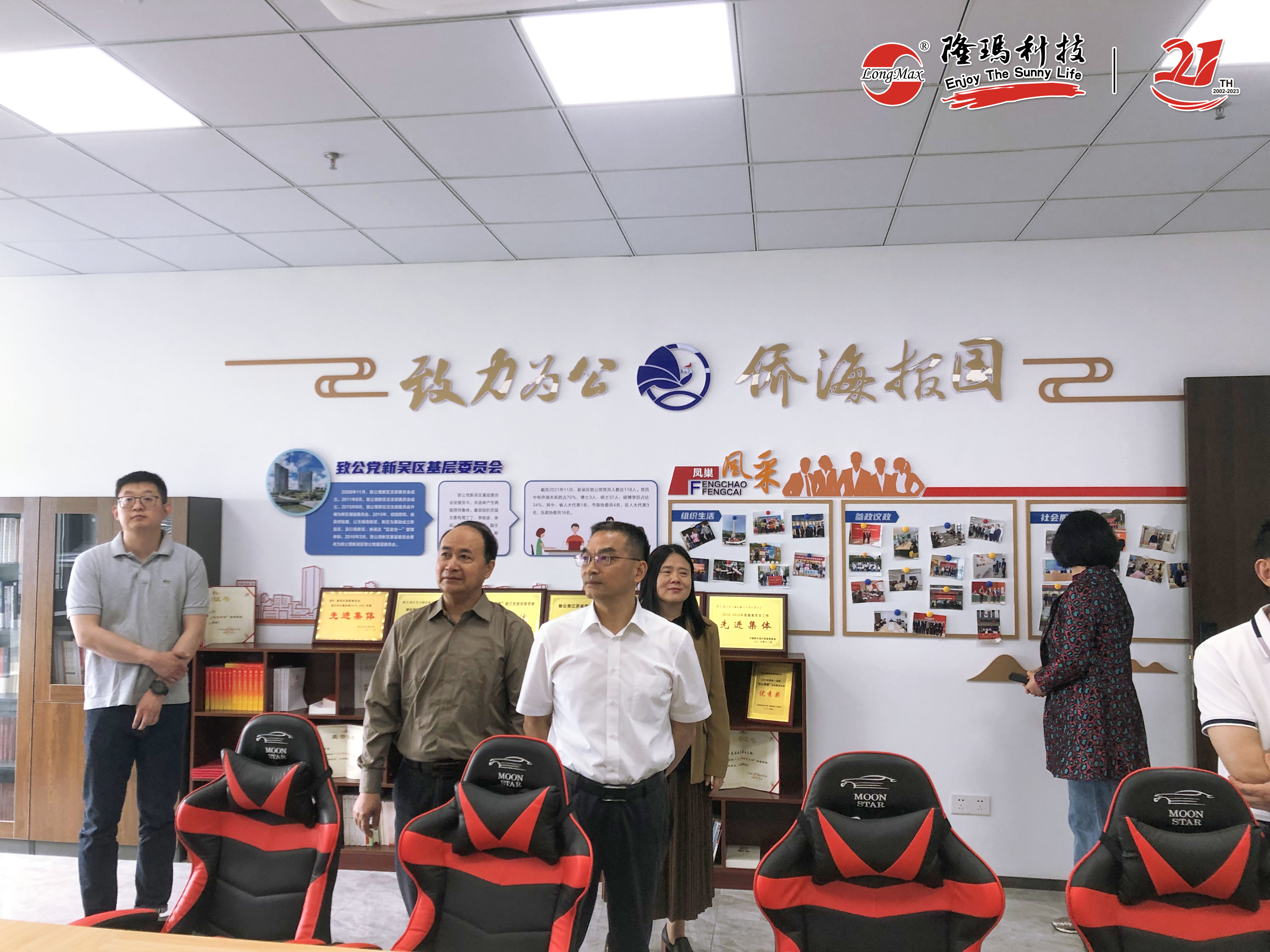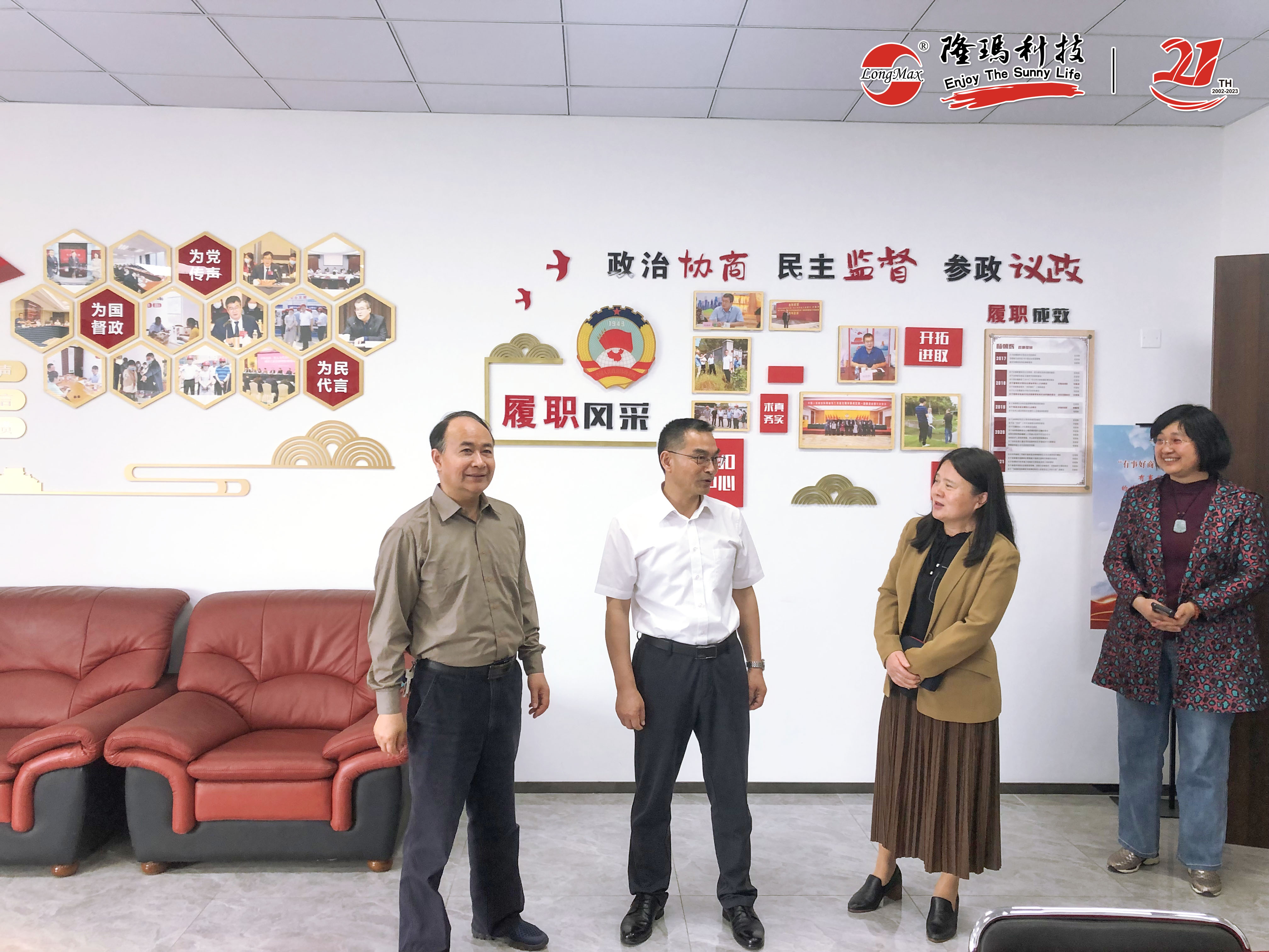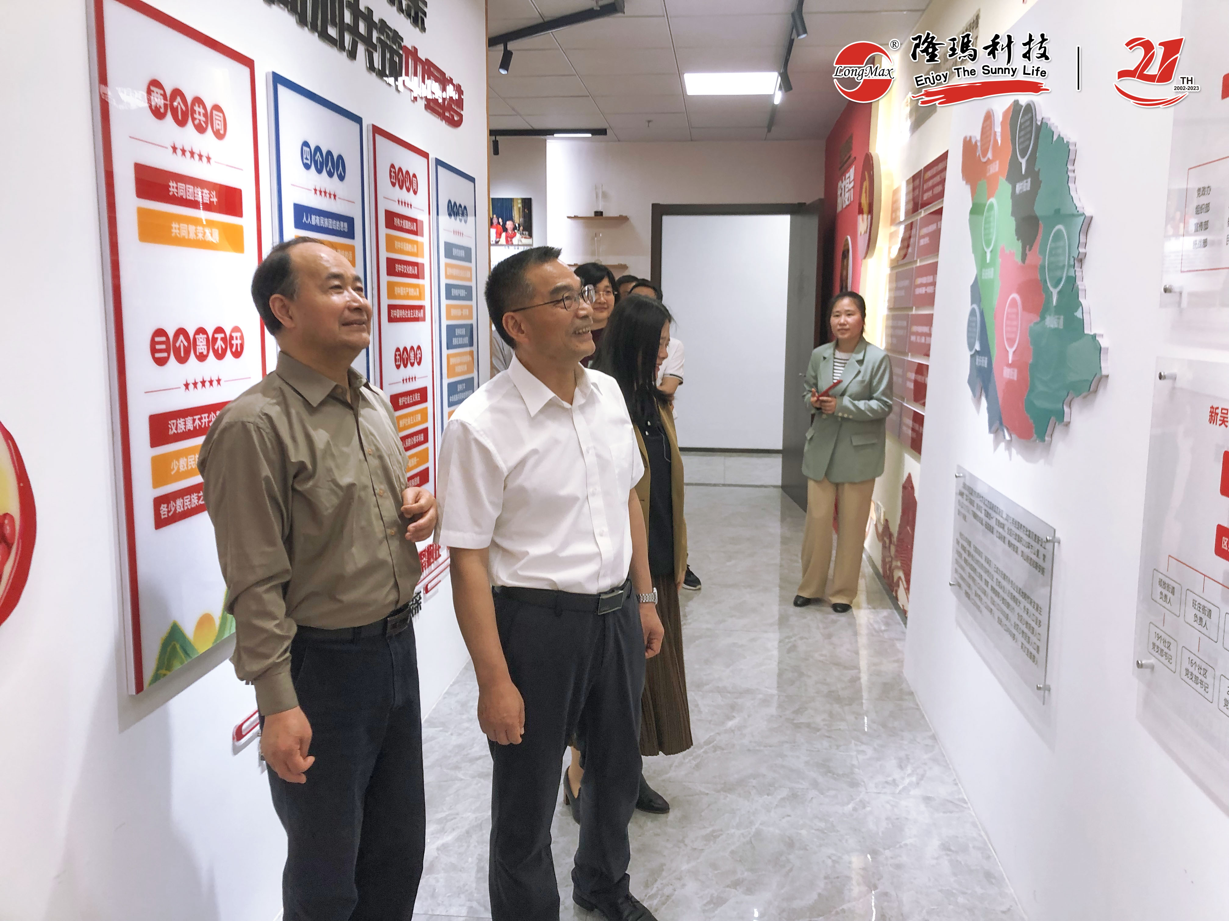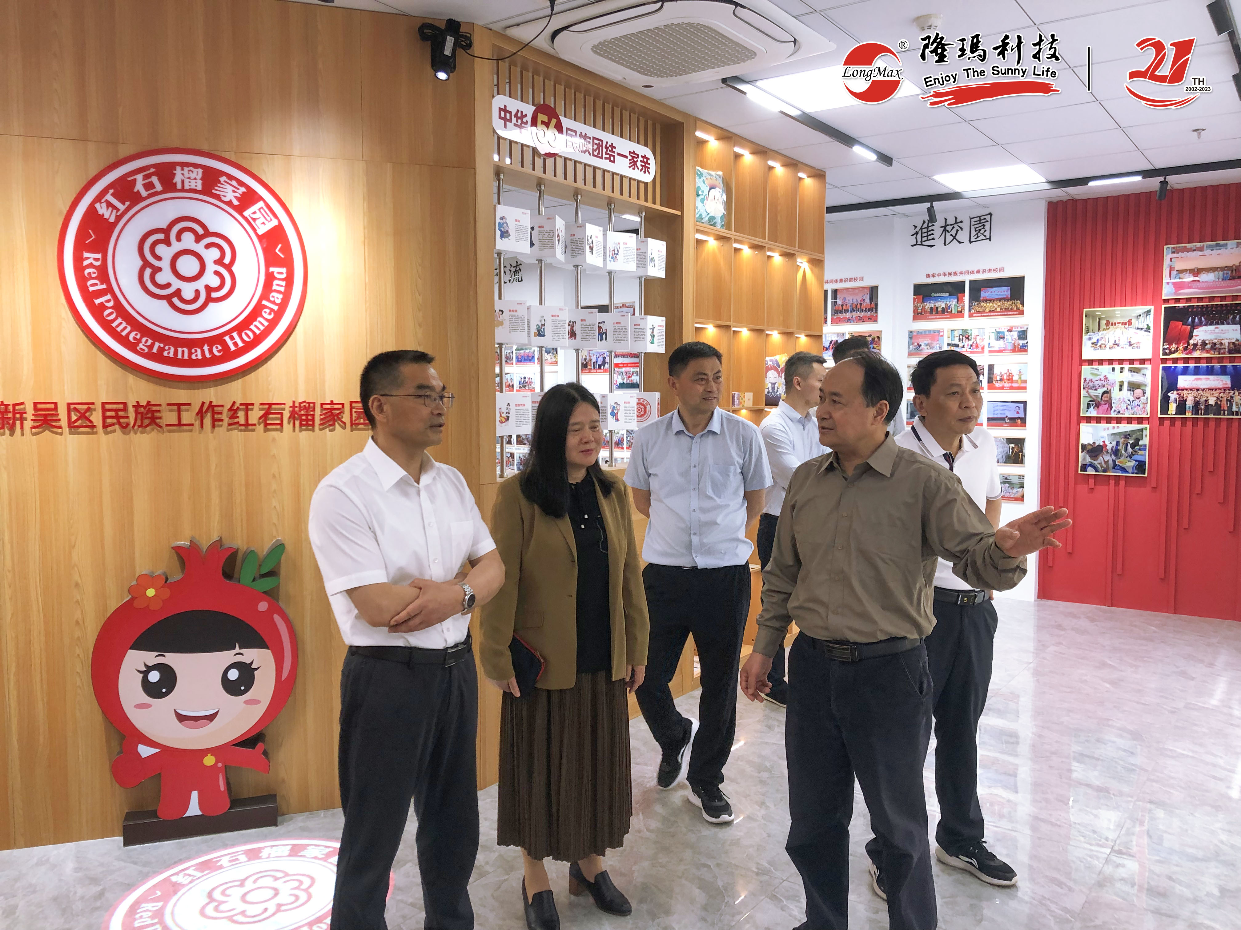 考察团听取了一楼公司业绩展板的情况介绍,实地参观了企业内“人大代表工作站、政协委员工作室”、“新吴致公党党员活动之家”和“民族团结红石榴家园”等活动阵地。