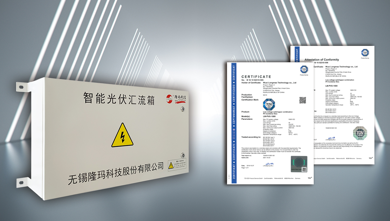 DC1500V的32路智能汇流箱,获得全球首张TUV认证证书