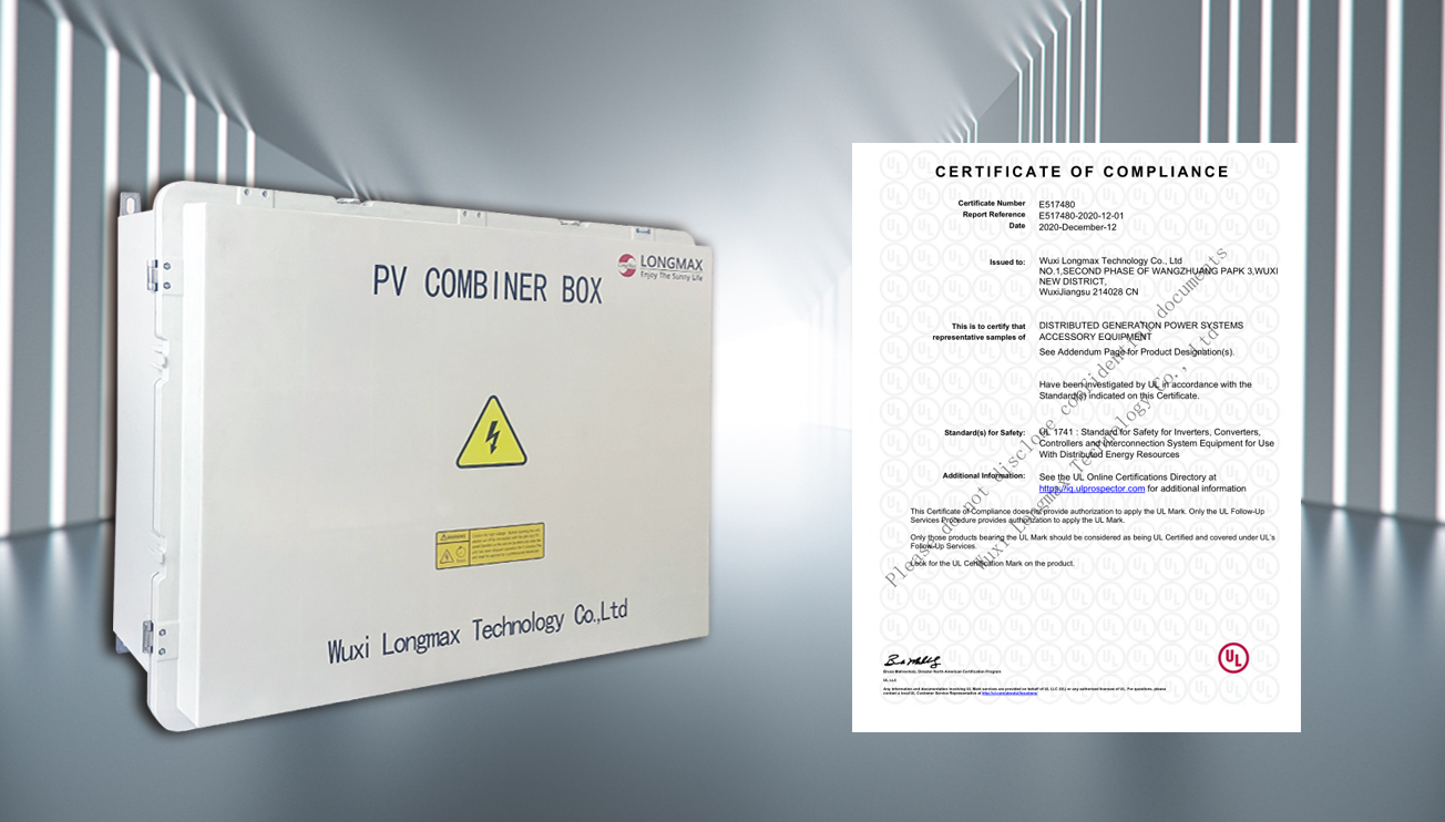 DC1500V的智能汇流箱产品,获得国内第一家UL认证证书