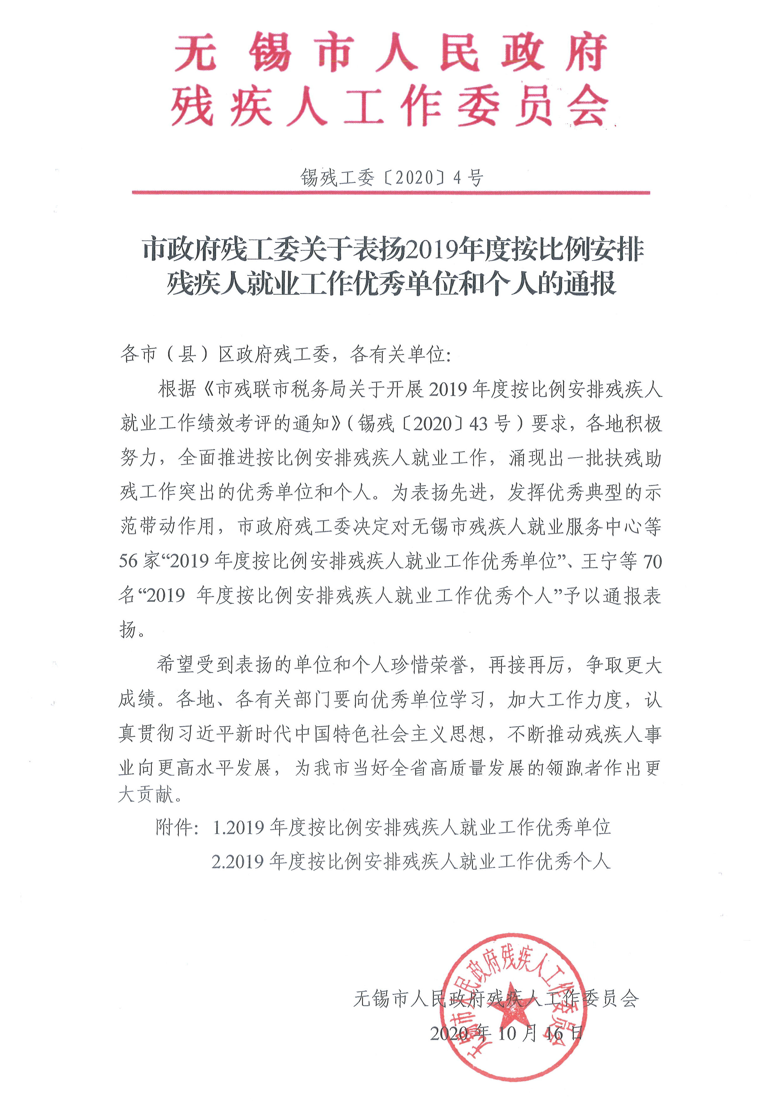 ![锡残工委{2020]4号市政府残工委关于表扬2019年度按比例安排残疾人就业工作优秀单位和个人的通报-1.jpg](/Upload/ueditor/images/2021-02-19/锡残工委{2020]4号市政府残工委关于表扬2019年度按比例安排残疾人就业工作优秀单位和个人的通报-1-fb41373a-924c-47fe-adf6-d6cceff208ae.jpg)