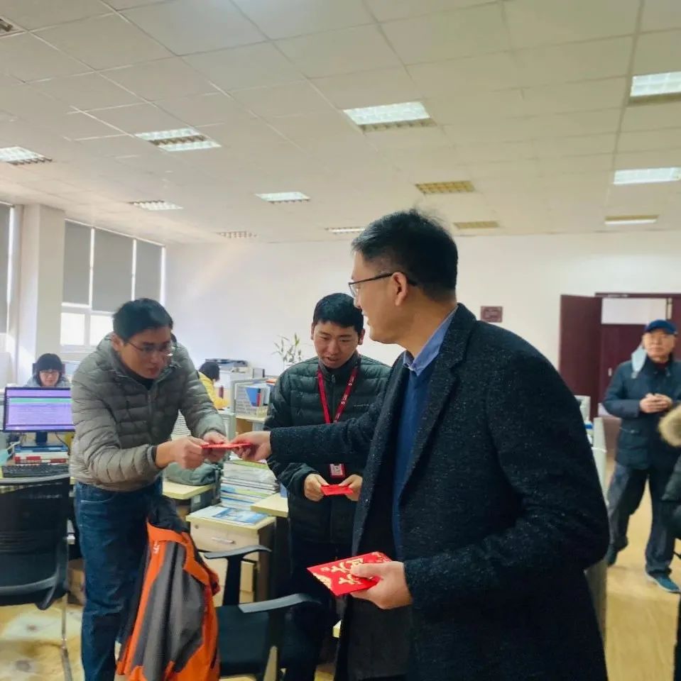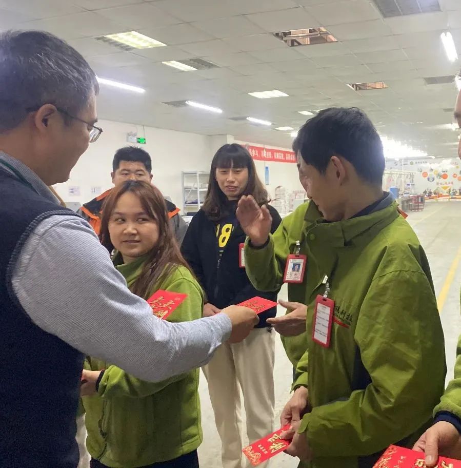 在喜气洋洋的氛围中,公司领导与员工们亲切握手交谈送上新年祝福。